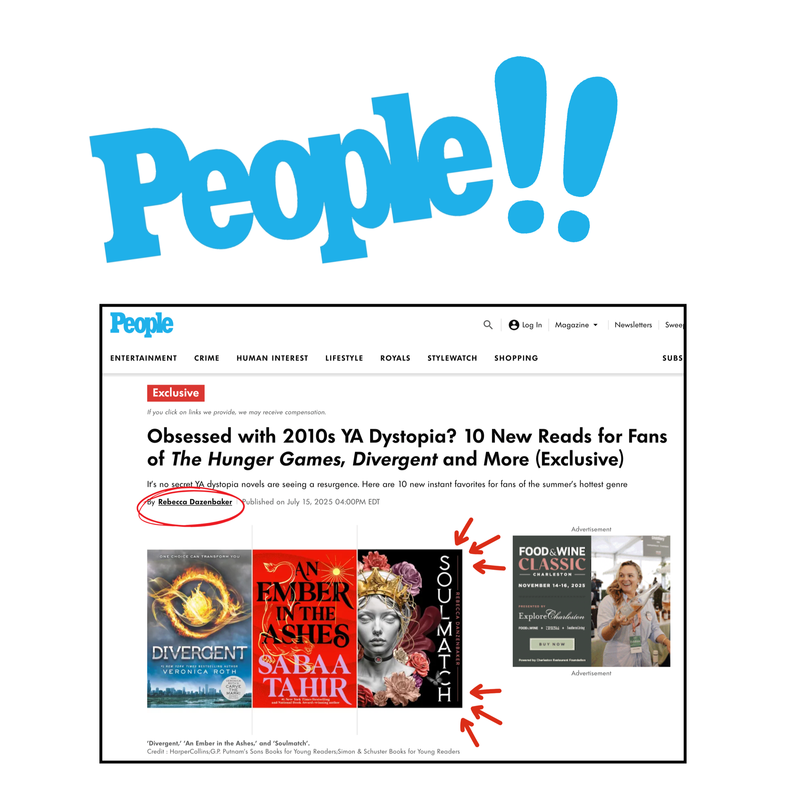 I published an article in PEOPLE MAGAZINE (!!!), matching new dystopian novels with dystopian favorites. Yes, that People Magazine.